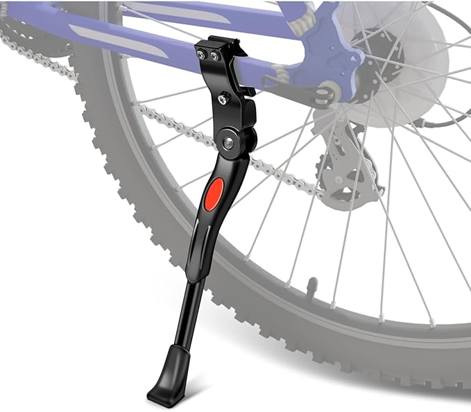 - Height Adjustable and Waterproof – Easy to adjust the length of the kick stand with a hex key. wear-resisting, very durable to use. This bicycle stand features a safety reflector, which keeps the bicycle visible in the dark