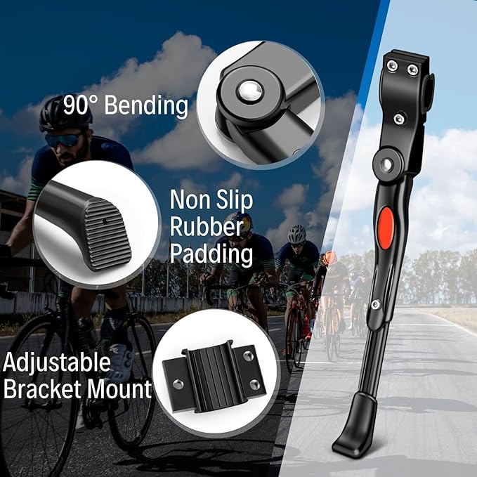 - A Must Bike Accessory – It features non-slip rubber padding, to ensure more resting stability, prevents slipping on wet surfaces and sinking in mud. Park your bicycle conveniently with this bike kickstand