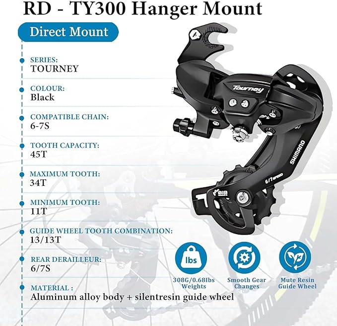 - 【Model】RD-TY300-SGS; Bike 6/7 Speed Hanger Mount Rear Derailleur for Most kinds of bikes like Mountain bike,Hybrid / Commuter Bikes, Kids’ & Teen Bikes, cruiser bike etc