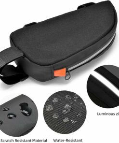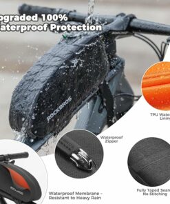 - Waterproof Protection: This top tube bike bag combines 600D TPU composite fabric and seamless compression moulding with waterproof zips, making it an ideal bike storage bag for all weather. The waterproof design defends against rain and splashes. While four-sided PP sheet reinforcement ensures the bike frame bag stays rigid and structured no soft collapse, effectively protect items from collision damage.