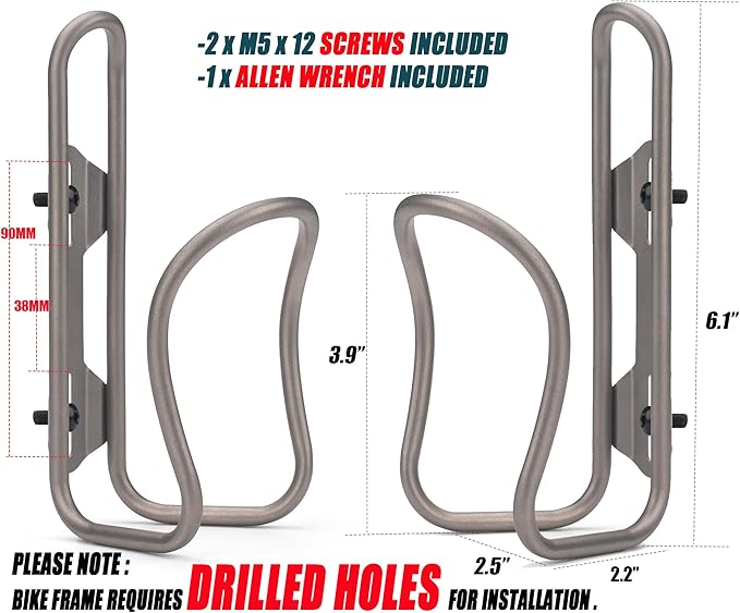 - EASY INSTALLATION: Use a 4mm hex key (included) to fasten cages in screw holes on frame. PLEASE NOTE – bike frame requires threaded holes for installation of cages.